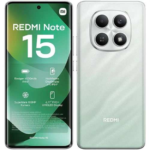 يتميز هاتف Xiaomi Redmi Note 15 4G بتقديم توازن مثالي بين الأداء والسعر في فئته. يعتمد الجهاز على معالج Mediatek Helio G100 Ultra، الذي يوفر أداءً موثوقاً وسلساً للمهام اليومية والألعاب. يأتي الهاتف بذاكرة وصول عشوائي ثابتة سعتها 6 جيجا، وذاكرة تخزين داخلية بسعة 128 جيجا، وهي سعات تلائم الاستخدام المتوسط والمكثف. ويُعد المستشعر الرئيسي للكاميرا نقطة قوته الأبرز، حيث تبلغ دقته 108 ميجا بكسل، مما يضمن التقاط صور فائقة الدقة والتفاصيل. تعرض الشاشة التي يبلغ حجمها 6.77 بوصة محتوى بدقة عالية (Full HD Plus) تبلغ 1080×2392 بكسل، ما يمنح تجربة مشاهدة واضحة وممتعة. يعمل الجهاز بنظام التشغيل أندرويد 15 مع واجهة HyperOS 2. كما يضم بطارية ضخمة بسعة 6000 مللي أمبير، وتدعم الشحن السلكي السريع بقدرة 33 واط لضمان استمرارية التشغيل طوال اليوم.