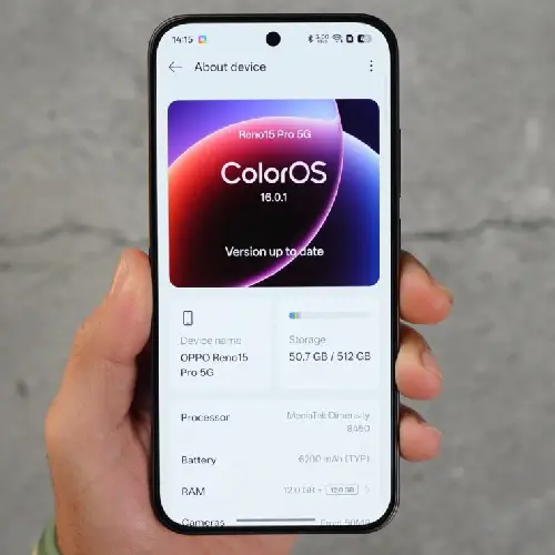 يعمل هاتف Oppo Reno 15 Pro بمعالج Dimensity 8450 القوي بتكنولوجيا 4 نانو، ويأتي بذاكرة عشوائية سعة 12 جيجابايت ومساحة تخزين داخلية 512 جيجابايت، يتميز موبايل اوبو رينو 15 برو بمنظومة تصوير فائقة بكاميرا خلفية ثلاثية دقتها 200 ميجا بكسل للعدسة الرئيسية وعدستين بدقة 50 ميجا بكسل، بالإضافة إلى كاميرا أمامية بدقة 50 ميجا بكسل، كما يضم شاشة قياس 6.32 بوصة بدقة عالية، وبطارية سعة 6200 مللي أمبير، ويعمل بنظام تشغيل أندرويد 16.